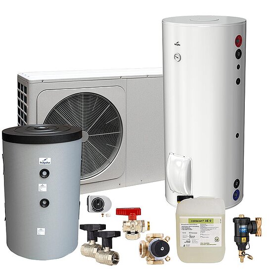 10 kW Wärmepumpen Paket mit Warmwasser-Wärmepumpenspeicher 300 L für Fußbodenheizung
